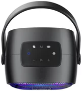 Το ηχείο είναι εξοπλισμένο με μια εύχρηστη λαβή, ώστε να μην έχετε κανένα πρόβλημα να το μεταφέρετε. Από την άλλη πλευρά, η οθόνη αφής καθιστά εύκολη τη χρήση του - από αυτήν μπορείτε να ρυθμίσετε την ένταση του ήχου, να σταματήσετε την αναπαραγωγή κ.λπ. Επιπλέον, μπορείτε να επιλέξετε ανάμεσα σε 5 εφέ φωτισμού. Υπάρχουν επίσης θύρες AUX και USB και υποδοχή για κάρτες Micro SD/TF.