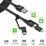 Το καλώδιο είναι εξοπλισμένο με μια τυπική είσοδο USB και 3 υποδοχές με διαφορετικές υποδοχές Micro-USB, Lightning και Type-C, χάρη στις οποίες συνδέουμε τρεις διαφορετικές συσκευές με διαφορετικές θύρες στην τροφοδοσία ρεύματος. Το καλώδιο διαθέτει ένα έξυπνο σύστημα διαχείρισης που ρυθμίζει την κατάλληλη τάση σε μια συγκεκριμένη συσκευή, η οποία είναι μια βέλτιστη και ασφαλής ανανέωση ενέργειας ανάλογα με τη ζήτηση του smartphone.