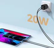 Με αυτόν τον φορτιστή, είναι δυνατή η γρήγορη φόρτιση δύο συσκευών ταυτόχρονα - για κάθε μία από τις θύρες υπάρχει μέγιστη ισχύς 20W.