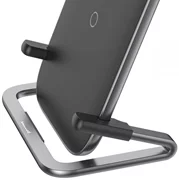 Ο φορτιστής έχει τελειώσει σε αλουμίνιο, γεγονός που το καθιστά πολύ κομψό. Η επιφάνεια καθώς και η βάση έχουν καλυφθεί με αντιολισθητικό υλικό έτσι ώστε ο φορτιστής να στέκεται σταθερά και το τηλέφωνο πάνω του να μην γλιστράει.