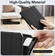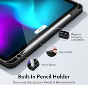 Το πτυσσόμενο κάλυμμα προστατεύει την οθόνη της συσκευής και αλληλεπιδρά με το σύστημα ύπνου και αφύπνισης της συσκευής. Η θήκη διαθέτει κατάλληλο αποθηκευτικό χώρο για το Apple Pen.