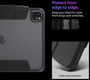 Η θήκη διαθέτει τεχνολογία Air Cushion για επιπλέον προστασία από κραδασμούς και χτυπήματα. Το μαγνητικό κάλυμμα υποστηρίζει λειτουργίες αναστολής λειτουργίας και αφύπνισης για ελαφρώς μεγαλύτερη διάρκεια ζωής της μπαταρίας, ενώ ένα βολικό πτερύγιο εμποδίζει το Apple Pen να πέσει έξω.