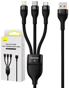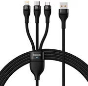 Φορτίστε εύκολα έως και 3 συσκευές ταυτόχρονα. USB 3 σε 1 καλώδιο Baseus Flash Series είναι εξοπλισμένο με 3 υποδοχές - USB-C, αστραπή και micro USB. Επιτρέπει τη γρήγορη φόρτιση με ισχύ έως και 100W. Σας επιτρέπει επίσης να μεταφέρετε αρχεία σε ταχύτητες μέχρι 480Mbps (στο βύσμα USB-C /αστραπή). Ταυτόχρονα, είναι εξαιρετικά ανθεκτικό και εξασφαλίζει ασφάλεια χρήσης.