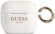 GUESS Καπάκι σιλικόνης. Η θήκη σιλικόνης προστατεύει τον ασύρματο σταθμό σύνδεσης ακουστικών Apple AirPods 3 από επιφανειακές φθορές και γρατζουνιές. Η θήκη σιλικόνης υψηλής ποιότητας ταιριάζει απόλυτα με τα αρχικά AirPods 3 και είναι εξαιρετικά ευχάριστη στην αφή. Στο πλάι της κάσας υπάρχει ένα πρακτικό, χρυσό δαχτυλίδι, το οποίο σας επιτρέπει να συνδέσετε τη θήκη, π.χ. σε ένα κορδόνι. Πρόσθετα οπτικά εφέ προσθέτουν ένα φινίρισμα glitter.