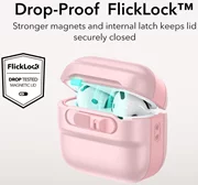 Το πιο σημαντικό χαρακτηριστικό είναι ο ισχυρός μαγνήτης που είναι ενσωματωμένος στο κλείσιμο. Αυτό εξασφαλίζει ότι τα ακουστικά σας παραμένουν σταθερά στη θέση τους, χωρίς τον κίνδυνο να πέσουν κατά λάθος έξω. Επιπλέον, η θήκη είναι εξοπλισμένη με συρόμενη κλειδαριά ανοίγματος, η οποία τα ασφαλίζει ακόμη καλύτερα.