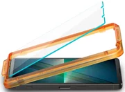 Το σκληρυμένο γυαλί από τη σειρά "AlignMaster" της Spigen έχει στερεωθεί με ένα πλαίσιο τοποθέτησης τέλεια κομμένο στο μπροστινό μέρος του τηλεφώνου, χάρη στο οποίο μπορείτε να το τοποθετήσετε τέλεια στην οθόνη. Ο κατασκευαστής έχει απλοποιήσει τη διαδικασία τοποθέτησης σε τέτοιο βαθμό ώστε να είναι πλήρως διαισθητική για κάθε χρήστη.