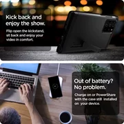 Η θήκη, εξοπλισμένη με ένα πόδι, σας επιτρέπει να παρακολουθείτε απρόσκοπτα τι συμβαίνει στην οθόνη του τηλεφώνου σας χωρίς να χρειάζεται να το κρατάτε. Η θήκη είναι μια τέλεια εφαρμογή και δεν περιορίζει τη δυνατότητα ασύρματης φόρτισης.