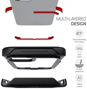 The Atomic Slim iPhone 12 case is the perfect combination of military-grade protection, modern design, and next-gen tech! With state-of-the-art shockproof drop resistance, these clear iPhone 12 cases are built to withstand drops from 12 feet. The heavy-duty drop-tested protection is thanks to the case’s advanced reinforced dual-layer design. Inside you’ll find a shockproof, ultra-thin flexible TPU inner skin. The outer layer of this iPhone case features a protective armor Atomic No.13 – aluminum alloy bumper frame. Even more cutting-edge is the R7x shock-absorbing technology that can be found embedded in this phone case for the iPhone 12. The case’s premium design includes raised impact absorbent corners and a lifted bezel for extra screen and camera lens protection. Not overlooking style, this iPhone 12 case offers protection in an elegant, slim design. The phone cases themselves come in various colors to choose from - black, pink, and red. The scratch-resistant full body clear back window is standard on all these models. Finally, these iPhone 12 phone cases are built to be convenient. You’ll never have to take the protective cases off as all buttons and ports are easily accessible. The Atomic Slim protector is also wireless charging compatible and supports MagSafe accessories.