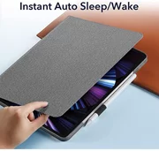 Το κάλυμμα ταιριάζει απόλυτα και προσαρμόζεται άνετα στο iPad. Είναι κατασκευασμένο από υψηλής ποιότητας κλωστοϋφαντουργικό υλικό, το οποίο δίνει στη συσκευή κομψότητα. Λειτουργικά σχεδιασμένο μπροστινό πτερύγιο είναι επίσης μια μορφή βάσης για την προβολή φωτογραφιών και βίντεο. Η θήκη χρησιμοποιεί επίσης χώρο για το Apple Pencil, το οποίο σας επιτρέπει να μεταφέρετε εύκολα τη γραφίδα μαζί με τη συσκευή.
