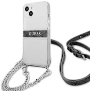 Η θήκη έχει σχεδιαστεί ως μια μοναδική εναλλακτική λύση στις κανονικές θήκες κινητών τηλεφώνων, καθώς και για να δώσει μια μοναδική, απλοϊκή εμφάνιση. Ένα προϊόν μιας αξιόπιστης εταιρείας εξαιρετικά υψηλής ποιότητας κατασκευασμένο από ισχυρό και ανθεκτικό πολυανθρακικό. Διαφανής θήκη με τυπωμένο λογότυπο Guess θα τονίσει το κύρος της συσκευής σας. Το σύνολο συμπληρώνεται από έναν πρακτικό ιμάντα, ο οποίος είναι ένας συνδυασμός κομψού οικολογικού δέρματος με μεταλλική αλυσίδα, δίνοντας επιπλέον κομψότητα.