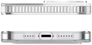 Αυτή η περίπτωση είναι εξαιρετικά διαφανής λόγω του υλικού από το οποίο κατασκευάζεται - πολυανθρακικό. Είναι ανθεκτικό στην αλλαγή χρώματος ακόμη και όταν εκτίθεται στο ηλιακό φως και δεν αλλάζει τη μορφή του σε υψηλές θερμοκρασίες και οι διαστάσεις του είναι σταθερές. Το προϊόν προστατεύει το τηλέφωνο από γρατζουνιές και απορροφά μέρος της ενέργειας αν χτυπήσει στο έδαφος. Είναι συμβατό με το σύστημα MagSafe. Έχει επίσης τρύπες κομμένες στα σωστά σημεία. Το περίβλημα είναι λειτουργικό και κομψό.