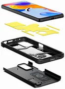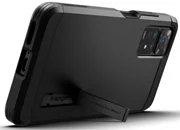 Η θήκη, εξοπλισμένη με ένα πόδι, σας επιτρέπει να παρακολουθείτε απρόσκοπτα τι συμβαίνει στην οθόνη του τηλεφώνου σας χωρίς να χρειάζεται να το κρατάτε. Η θήκη είναι μια τέλεια εφαρμογή και δεν περιορίζει τη δυνατότητα ασύρματης φόρτισης. Η ελαφρώς ανυψωμένη μορφή της θήκης γύρω από την κάμερα και την οθόνη την προστατεύει από γρατζουνιές, ανυψώνοντας το τηλέφωνο ακριβώς πάνω από την επίπεδη επιφάνεια. Διαθέτει καλύμματα κουμπιών και εγκοπές για λιμάνια.
