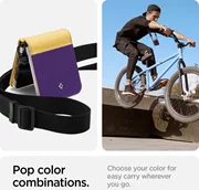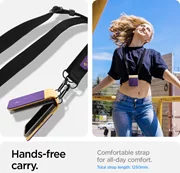 Συμπληρώνοντας το σύνολο είναι ένας ρυθμιζόμενος ιμάντας που συνδέεται με το κάλυμμα, ο οποίος μπορεί να κρεμαστεί γύρω από το λαιμό ή τον ώμο, μετατρέποντας την θήκη σε μια πρακτική και βολική στη χρήση τσάντα.