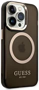 Η θήκη θα αναδείξει τέλεια τον μοναδικό σχεδιασμό του iPhone σας, είναι διακοσμημένη με χρυσά στοιχεία όπως το πλαίσιο γύρω από τους φακούς, τα κουμπιά και το λογότυπο Guess. Η θήκη είναι εξοπλισμένη με μαγνητικό δακτύλιο συμβατό με τον ασύρματο φορτιστή MagSafe, εξασφαλίζοντας γρήγορη και εύκολη φόρτιση. Ο μαγνητικός δακτύλιος ταιριάζει απόλυτα με τα χρώματα του καλύμματος.