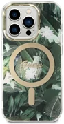 Ασυνήθιστα οπτικά εφέ προσφέρουν τα χρυσά αξεσουάρ με τη μορφή πλαισίου γύρω από την κάμερα και το έμβλημα του οίκου μόδας Guess. Για μέγιστη άνεση του χρήστη, η θήκη είναι εξοπλισμένη με έναν μαγνητικό δακτύλιο συμβατό με την τεχνολογία MagSafe που επιτρέπει τη γρήγορη, ασύρματη φόρτιση.