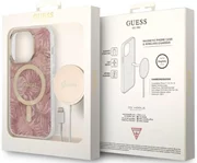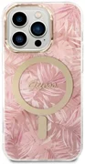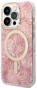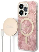 Ασυνήθιστα οπτικά εφέ προσφέρουν τα χρυσά αξεσουάρ με τη μορφή πλαισίου γύρω από την κάμερα και το έμβλημα του οίκου μόδας Guess. Για μέγιστη άνεση του χρήστη, η θήκη είναι εξοπλισμένη με έναν μαγνητικό δακτύλιο συμβατό με την τεχνολογία MagSafe που επιτρέπει τη γρήγορη, ασύρματη φόρτιση.