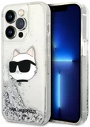 Η θήκη ξεχωρίζει με τα ρευστά, αστραφτερά σωματίδια λάμψης που αλλάζουν διάταξη καθώς αλλάζει η γωνία θέασης. Η κλασική διαφανής θήκη, εκτός από τα οπτικά της εφέ, κοσμείται από το ομοίωμα της διάσημης γάτας του σχεδιαστή, Choupette.