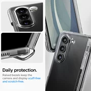 Η ελαφρώς υπερυψωμένη μορφή της θήκης γύρω από την κάμερα και την οθόνη την προστατεύει από γρατζουνιές, ανυψώνοντας τη συσκευή λίγο πάνω από την επίπεδη επιφάνεια. Ένα προϊόν ιδανικό για τους μινιμαλιστές που εκτιμούν τη φυσική λεπτότητα της συσκευής τους.