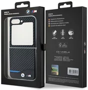 Η επιφάνεια των θήκες καλύπτεται με ύφασμα από ανθρακονήματα και λεπτό οικολογικό δέρμα, προσφέροντας στο smartphone σας μια μοναδική εμφάνιση. Οι θήκες ενισχύονται περαιτέρω από μπλε ραφές, οι οποίες είναι χρωματικά συντονισμένες με τα χρώματα της μάρκας BMW. Το λεπτό δέρμα, το μοναδικό μοτίβο από ύφασμα ανθρακονήματος και οι κομψές λεπτομέρειες προσδίδουν σε όλες τις συσκευές ένα κλασικό, κομψό σχήμα. Ολόκληρος ο σχεδιασμός ολοκληρώνεται με ένα μικρό μεταλλικό λογότυπο της BMW και του πακέτου M, το οποίο επιβεβαιώνει την υψηλή ποιότητα και την αυθεντικότητα του προϊόντος.