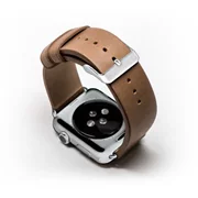 Luxurious leather strap in Brown colour with stainless steel adapters for Apple Watch, size 38 mm. Because of a perfectly straight cut and carefully selected skin, it literally radiates with timeless elegance while a distinctive perimeter stitching with a colour-coding thread gives the strap a modern-classics design. The double layer of a surprisingly lightweight leather ensures that the strap retains its solid shape and massive appearance for a long time. The colour of the clip and adapters corresponds to the Apple Watch shade and the adapters have also paid the manufacturer a great deal of attention to the fact that it would be as simple to replace the strap as wearing it.
