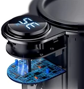 Η ποτηροθήκη είναι εύκολη στη λειτουργία - διαθέτει έναν απλό διακόπτη με οθόνη που δείχνει την τρέχουσα θερμοκρασία. Απλώς συνδέστε τη συσκευή στην πρίζα του αναπτήρα του αυτοκινήτου για να απολαμβάνετε κρύα ποτά το καλοκαίρι ή ζεστό τσάι το χειμώνα.