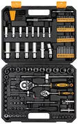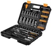 Το σετ εργαλείων Deko περιέχει 121 εργαλεία που θα χρησιμοποιήσετε κατά τη συναρμολόγηση επίπλων, αξεσουάρ κουζίνας ή κατά τη διάρκεια του DIY. Είναι κατασκευασμένα από χάλυβα υψηλής ποιότητας, γεγονός που συμβάλλει στην αντοχή και την αντοχή τους στη διάβρωση. Το αντιολισθητικό φινίρισμα εξασφαλίζει άνεση στη χρήση και η τσάντα διευκολύνει την αποθήκευση και τη μεταφορά των εργαλείων.