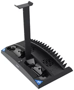 Αποθηκεύστε τόσο την κονσόλα όσο και τα αξεσουάρ της σε ένα σημείο με τη βάση iPega. Το προϊόν είναι συμβατό με PS4, PSR Slim και PS4 Pro. Προσφέρει μια λειτουργία φόρτισης, ώστε να μπορείτε να ανανεώσετε γρήγορα την ισχύ των ελεγκτών. Είναι εξοπλισμένο με 2 ανεμιστήρες, οι οποίοι θα σας βοηθήσουν να διατηρήσετε τον εξοπλισμό σας ασφαλή. Θα φιλοξενήσει επίσης ακουστικά και 17 παιχνίδια.