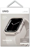 UNIQ Valencia προστατευτική θήκη για Apple Watch Series 4/5/6/7/SE Αποκτήστε το Apple Watch σας την προστασία που του αξίζει. Η υψηλής ποιότητας θήκη Apple Watch Series 4/5/6/7/SE, ενισχυμένη με υβριδική σχεδίαση Shocksorb™ 360°, παρέχει ευέλικτη και στιβαρή προστασία. Οι ενισχυμένες άκρες χάρη στη χρήση ανοδιωμένου αλουμινίου παρέχουν ευέλικτη προστασία από κρούσεις. Η θήκη ταιριάζει με το χρώμα του ιμάντα, ο σχεδιασμός snap επιτρέπει την εύκολη τοποθέτηση χωρίς να χρειάζεται να αφαιρέσετε το λουρί Apple Watch. Δεν περιορίζει την πρόσβαση σε εξωτερικές θύρες και αποτελεσματικά ch