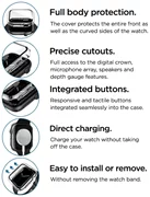 Πλήρης προστασία του σώματοςΤο κάλυμμα προστατεύει ολόκληρη την πρόσοψη καθώς και τις κυρτές πλευρές του ρολογιού.Γυάλινη διαύγεια & ανταπόκρισηΤα προστατευτικά οθόνης Eiger Mountain Glass επιτρέπουν την ευκρίνεια της οθόνης υψηλής ευκρίνειας. Το εξαιρετικά λεπτό γυαλί επιτρέπει τη χρήση της οθόνης αφής με απόκριση, με αίσθηση "μόλις που υπάρχει".Ακριβείς αποκοπέςΠλήρης πρόσβαση στο ημερολόγιο