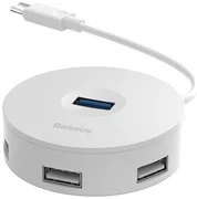 Το Baseus Hub 4 σε 1 USB-C έχει σχεδιαστεί για υψηλές ταχύτητες μεταφοράς δεδομένων, πλήθος θυρών και συμπαγή και κομψή σχεδίαση. Το Hub είναι εξοπλισμένο με μία υποδοχή USB 3.0 και τρεις υποδοχές USB 2.0. Η υποστήριξη για θύρα USB 3.0 επιτρέπει τη μεταφορά δεδομένων έως 5 Gb ανά δευτερόλεπτο. Η συσκευή είναι συμβατή με λειτουργικά συστήματα Windows (XP... 10), Mac OS και Linux. Χάρη στην τεχνολογία Plug&Play, δεν απαιτείται πρόσθετο λογισμικό. Το Hub διαθέτει επίσης μια πρόσθετη υποδοχή microUSB, η οποία σας επιτρέπει να συνδέσετε μια εξωτερική μονάδα δίσκου χωρητικότητας έως 4 TB.