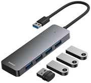 Το Baseus UltraJoy Lite είναι ένας διανομέας εξοπλισμένος με 4 θύρες USB-A 3.0 που προσφέρουν ταχύτητες μεταφοράς δεδομένων έως και 5Gbps, επιτρέποντάς σας να μεταφέρετε γρήγορα και αποτελεσματικά τα αρχεία σας μεταξύ των συσκευών σας, βελτιώνοντας έτσι την εμπειρία της εργασίας ή της ψυχαγωγίας σας. Μπορείτε να συνδέσετε διάφορους τύπους συσκευών στον διανομέα - όπως ποντίκι, πληκτρολόγιο, σκληρό δίσκο, μονάδα flash USB και πολλά άλλα. Κάθε θύρα διαθέτει ανεξάρτητο τσιπ που επιταχύνει τη μεταφορά δεδομένων. Για την ασφάλειά σας, η συσκευή διαθέτει επίσης τεχνολογία που προστατεύει από βραχυκυκλώματα, υπερτάσεις και υπερβολική τάση. Το καλώδιο 15 εκατοστών έχει υποβληθεί σε δοκιμή κάμψης με 5.000 στροφές. Το συμπαγές μέγεθός του εξασφαλίζει ότι μπορεί να χωρέσει εύκολα σε μια τσάντα φορητού υπολογιστή ή ακόμα και σε μια τσέπη, επιτρέποντάς σας να το έχετε πάντα μαζί σας.