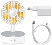 Χάρη στο μικρό του μέγεθος, ο ανεμιστήρας δεν θα πάρει πολύ χώρο στο γραφείο και θα είναι η διακόσμηση του. Το προϊόν διαθέτει ένα κουμπί, με το οποίο μπορείτε εύκολα και γρήγορα να ρυθμίσετε την ταχύτητα εμφύσησης. Γύρω από τον επιλογέα υπάρχει μια ένδειξη που ενημερώνει για τη διαδικασία φόρτισης, σηματοδοτεί ότι η συσκευή είναι ενεργοποιημένη κλπ.